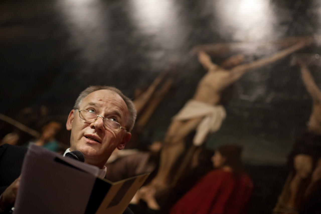 Szabó István református püspökAz Egyházi tárlatvezetések Munkácsy Krisztus trilógiájánál című rendezvényünkön a Magyar Nemzeti Galériában. Fotó: Kondella Mihály