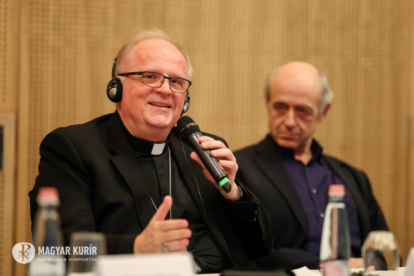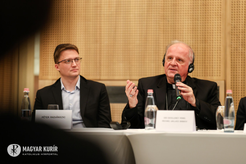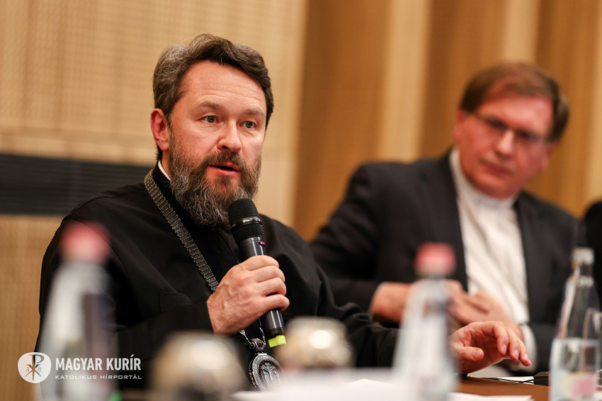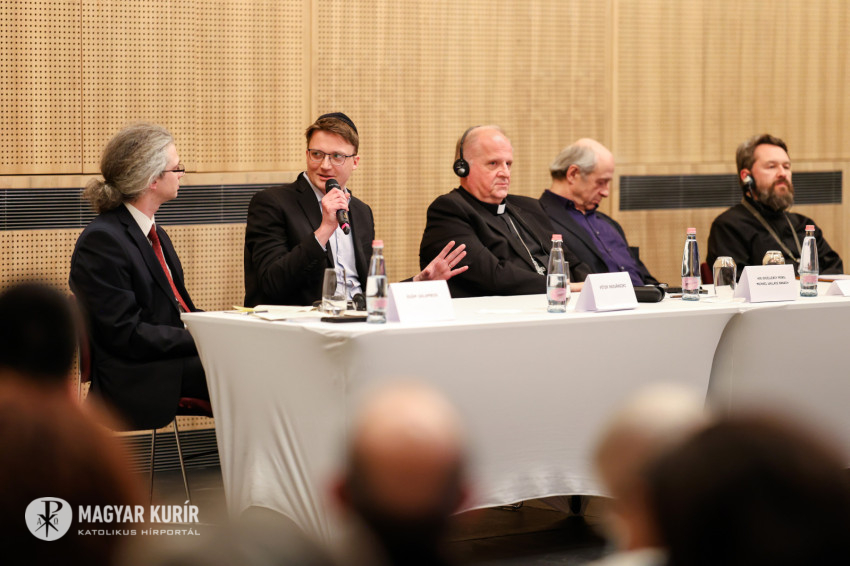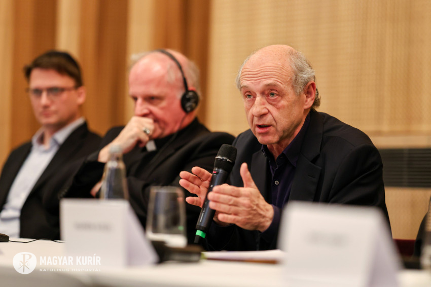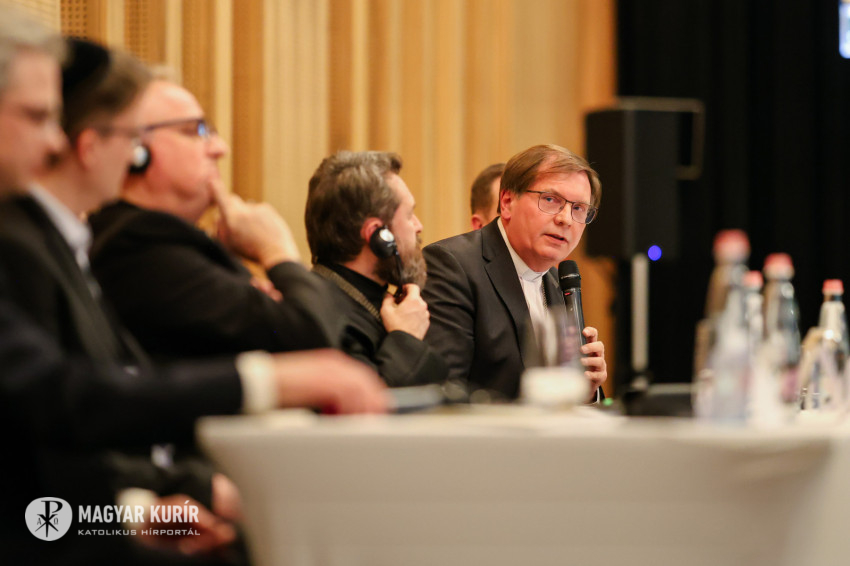 Michael Wallace Banach katolikus püspök, magyarországi apostoli nuncius, Fischer Iván karmester és Hilarion Alfejev metropolita a kerekasztal-beszélgetésen
